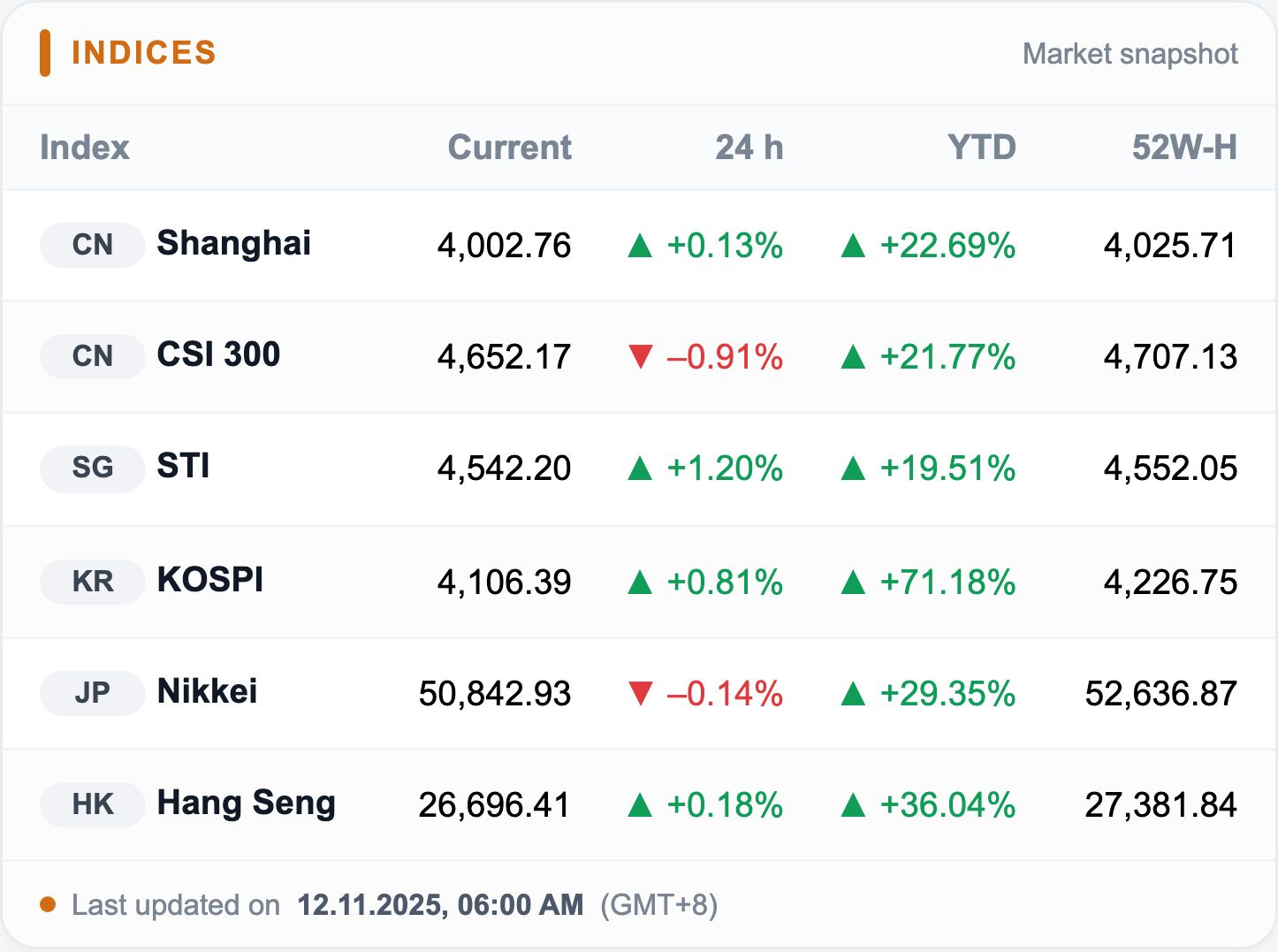 Highlights: Hopes for an end to the U.S. government shutdown lifted sentiment across Asia. In Tokyo, strong earnings and SoftBank expectations fueled momentum, while the KOSPI held firm on chip and industrial strength. China’s gold stocks shone amid rising bullion prices.