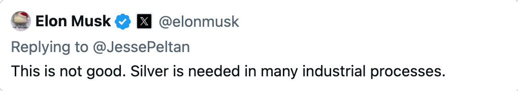 Musk is right: Without silver, the high-tech world grinds to a halt. A modern EV requires 25 to 50 grams, and a single solar panel needs around 20 grams of the metal.