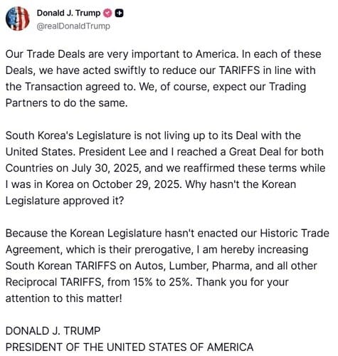Trump tightens the screws: 25% punitive tariffs on South Korea